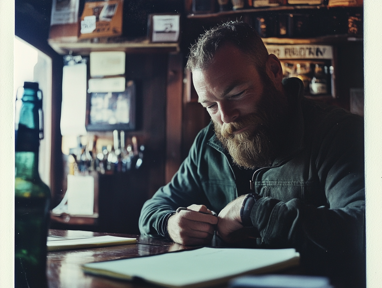 Neben unserer Freundin Alex werden sich ab sofort auch unsere Neuzugänge Heinrich und Jörg um die Artworks kümmern. Das generelle Interesse an unserem Spiel ist in diversen Facebook-Gruppen relativ groß. Wir sind aufgeregt… ein komisches Gefühl, eine leere Website zu präsentieren. Nun ja, fast leer. Dieser Blog-Eintrag und unser Logo lassen die Entstehung von etwas größerem zumindest vermuten. Ein Stimmungsfoto? Ich lichte Flo ab, wie er beim Vormittagsbier in unserer Stammspielunke über unseren Notizen uns Scribbles hängt. Es fühlt sich eigenartig an, bei einem Spaßprojekt über den persönlichen „bis-hierher-oder-es-wird-ernst“-Punkt hinauszuwachsen. Wir reden uns selbst ein, dass es kein Zurück mehr gibt. Zu große Ankündigungen gegenüber unserer Freunde und Familien. Auch vor den etwa 200 Fremden im Internet möchte man das Gesicht nicht verlieren. Also tun wir so, als ginge es um etwas. Ich meine, das tut es irgendwie schon. Auch wenn wir keinen Verlag im Nacken haben, der auf Auslieferung drängt; wir bezahlen seit etwa 2 Monaten Künstler, die sukzessive unsere Character-Ideen ins Photoshop pinseln. Also geht es eher darum nicht umsonst investiert zu haben, sondern mehr Kohle in das kleine Ungeheuer zu pumpen bis es endlich fertig ist. Und die gekaufte Domain nicht zu vergessen, die ich nun endlich beginne mit Inhalten zu füllen. Flo ist ruhiger als sonst. Für ihn fühlt es sich wohl ebenso erzwungen Ernst an. Unsere Reise geht weiter.